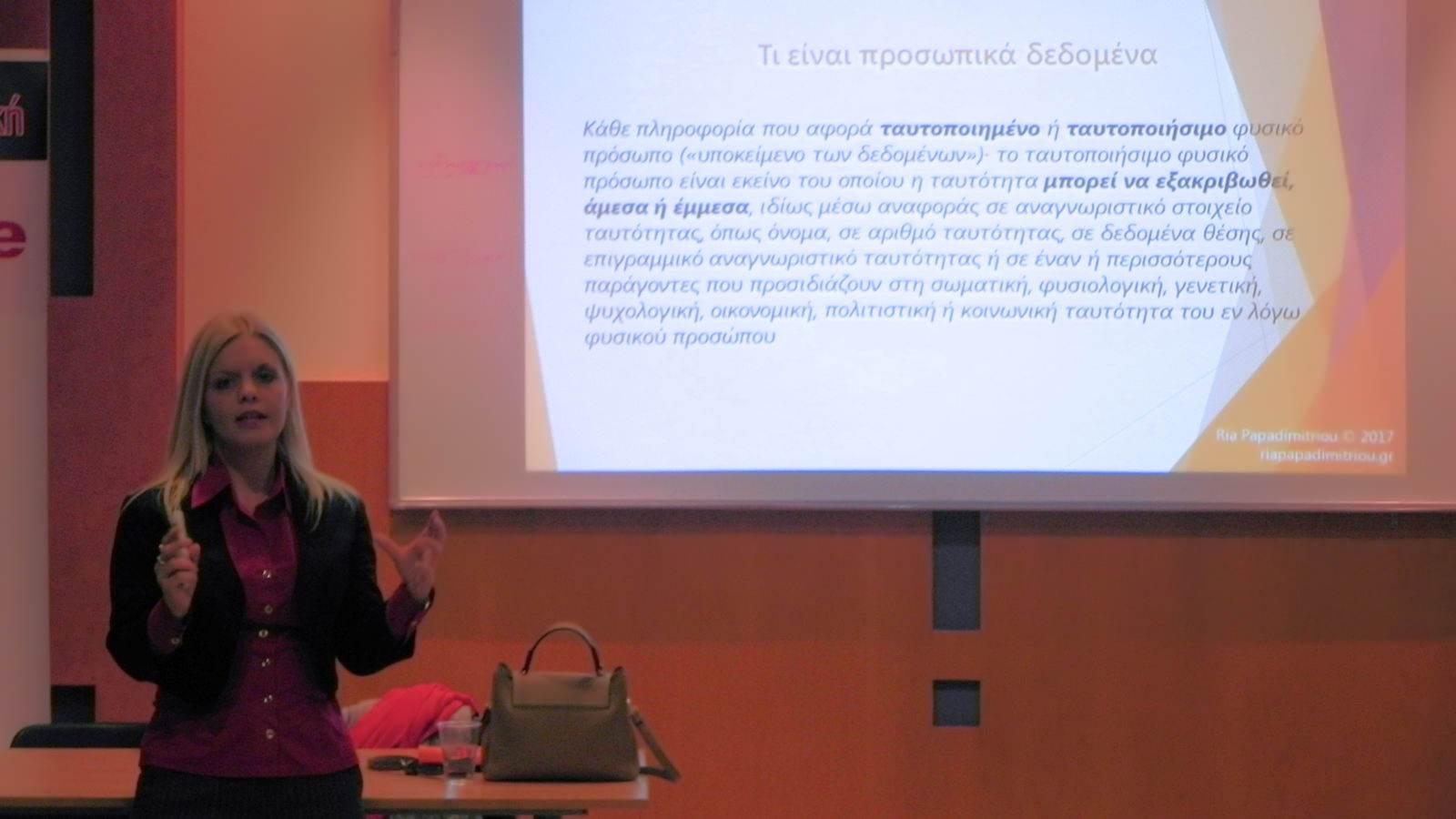 H Ρία Παπαδημητρίου ήταν προσκεκλημένη εισηγήτρια του Συνδέσμου Εξαγωγέων Βορείου Ελλάδος (Σ.Ε.Β.Ε.) στο Σεμινάριο GDPR που πραγματοποιήθηκε την Πέμπτη 2 Νοεμβρίου 2017 στους χώρους του Κέντρου Επιχειρηματικής & Πολιτιστικής Ανάπτυξης στη Θεσσαλονίκη.